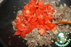 Затем добавляем помидоры и петрушку и тушим все вместе 10 минут.