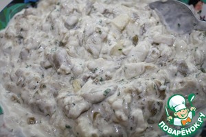 Затем смешиваем с солью, чесноком, петрушкой и йогуртом.