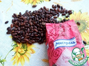 Фасоль пинто промыть и замочить в холодной воде на 6 часов. У меня вдруг обнаружились несколько начатых совсем старых упаковок, уже и не помню такие. Как остались, непонятно, ну, экономила раньше для конкурсов, у нас в городе не всегда Мистраль свободно был в продаже. Ну – было сказано – в старых пачках можно!)))