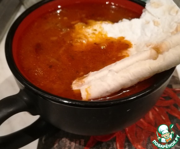 Все ингредиенты нашла, вот только зелёный перчик мне не попался. Ну да ладно, обошлась красным. Вкусно, сытно, горячо