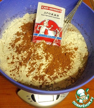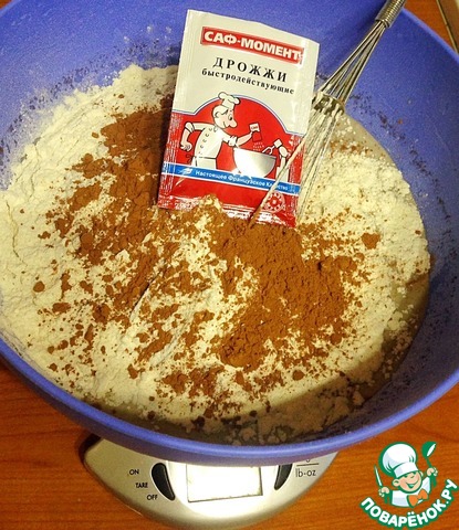 • Добавить муку, дрожжи и какао, хорошо перемешать до получения однородного теста. Оставить на два часа.
