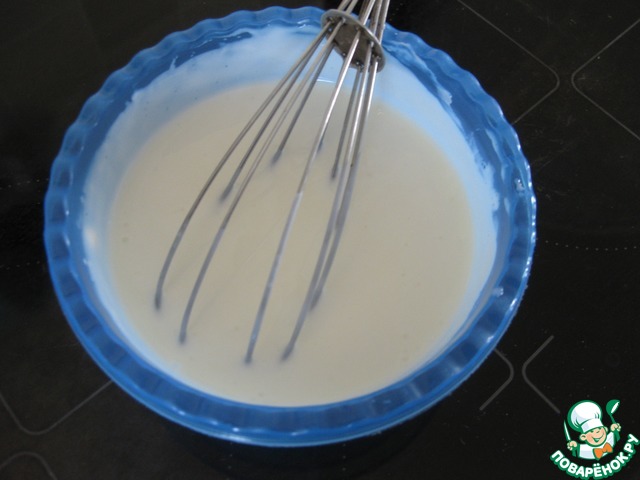 Все составляющие для заливки смешать и тщательно взбить венчиком