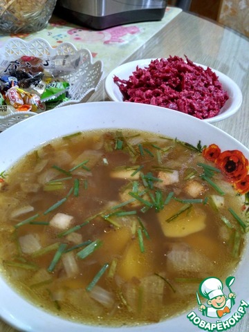 Затем засыпаем туда мелко нарезанный зелёный лук и варим ещё 5 минут!