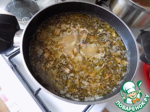 Чечевица с грибами у нас уже готовы и мы отправляем содержимое сотейника к ним в кастрюлю. Варим ещё минут 5. Солим суп по вкусу. |