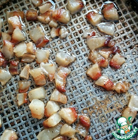 Тем временем порежем сало и пожарим, чтобы получились шкварочки.