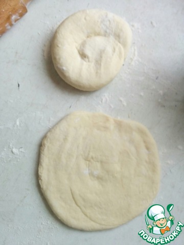 Сначала нужно сформировать пышку рукой, прижимая. Потом уже берем в руки скалку и раскатываем.