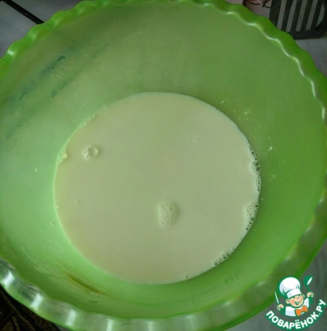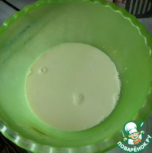 В молоко влить дрожжи и перемешать.