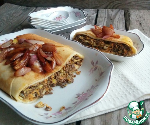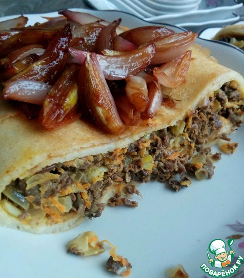 Блинная запеканка с ливером и луком