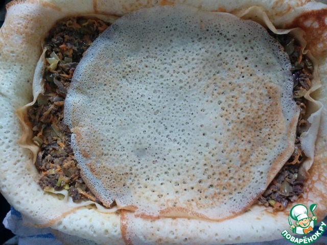 Рецепт «Блинная запеканка с ливером и луком»: