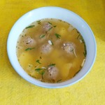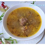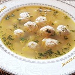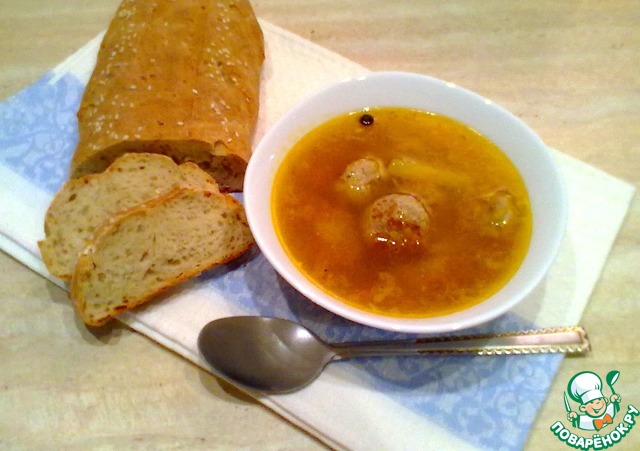 Я готовила полпорции супа. Сделать фрикадельки (у меня замороженные, говяже-свиные с луком и специями). Забросить в кипящую воду и проварить в течение 7-10 минут.
