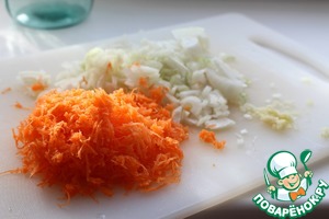 Мелко нарезать лук. Натереть на крупной терке морковь. Измельчить чеснок.