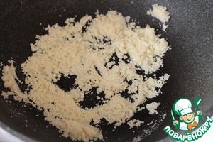 Растопить сливочное масло. Обжарить манку на среднем огне до золотистого цвета.