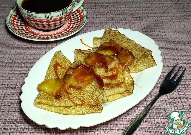 Ингредиенты для «Кружевные блины с карамельным бананом»: