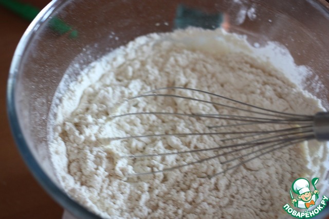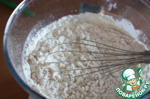 Пшеничную муку, сахар. Размешать и поставить в тёплое место на 30-40 минут