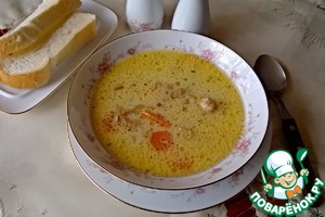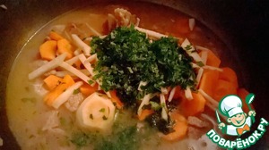 Потихоньку влить в бульон заправку. В оригинале надо кастрюлю снять с огня и добавить заправку, но я предпочла сразу в кипящий бульон влить. Чуть кипнуло - выключить огонь, накрыть крышкой и дать настояться 5 минут.
