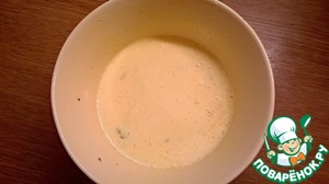 Тем временем готовим заправку: 1 желток смешать со 100 гр сметаны, добавить пару ложек бульона, щепотку соли и хорошо перемешать.
