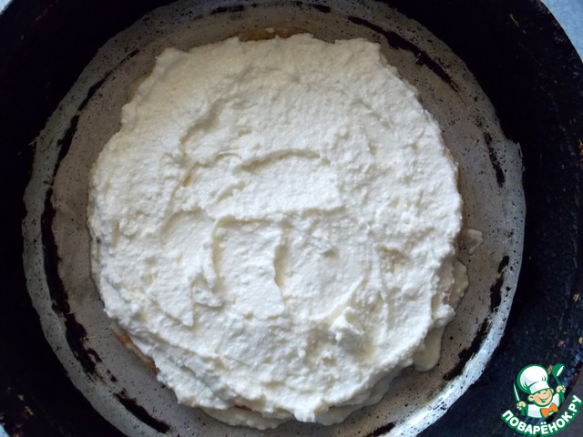 И так чередовать до конца. Последним слоем должен быть творожный слой. Им же нужно обмазать бока.