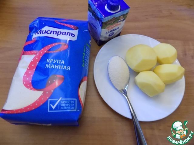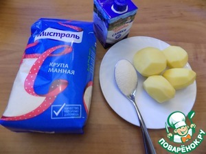 • Картофель варим до готовности минут 15 и постоянно помешивая, всыпаем манную крупу. Перемешиваем, корректируем на вкус соль и варим ещё минут 3-5. Снимаем с огня.