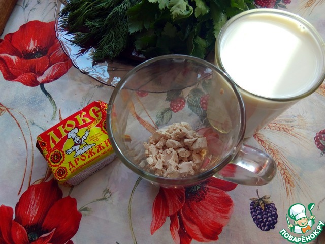 Прессованные дрожжи «Люкс Экстра» соединить с сахаром и чайной ложкой муки, добавить 50 мл теплого молока, хорошо размешать до однородности.