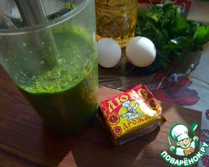 Измельчаем кабачок и зелень с помощью блендера в пюре.