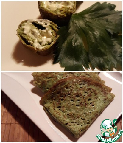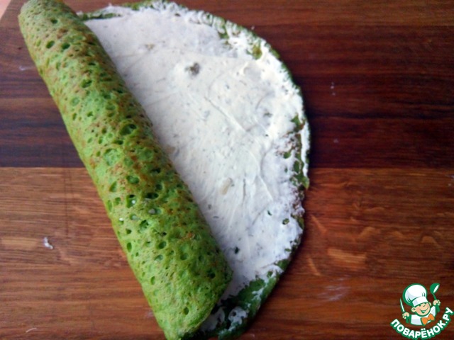 Можно намазать блин творожным сыром с зеленью, или намазкой из творога и зелени, скрутить ролом и подать в качестве закуски.