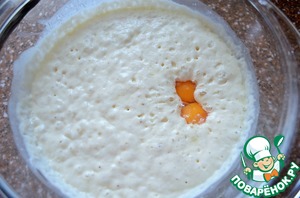 Дрожжи "заиграли", вмешать в опару соль и яйца.