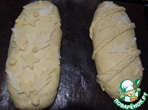 Смешать сливки и желток, смазать этой смесью заготовки.