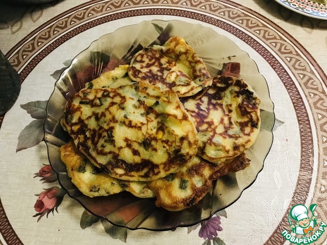 Рецепт «Оладьи с рубленым яйцом и луком»: