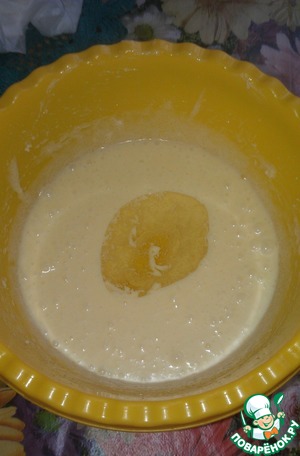 Масло сливочное взбить с сахаром, ввести яйца по одному. После вливаем масло растительное и перемешиваем