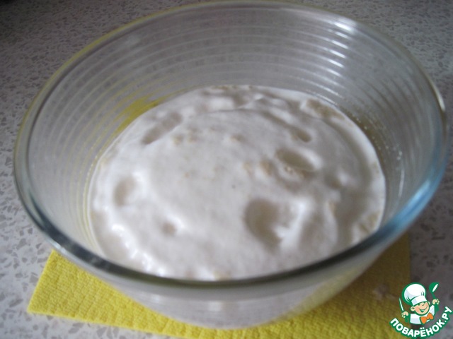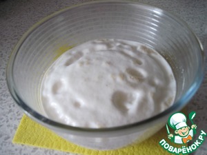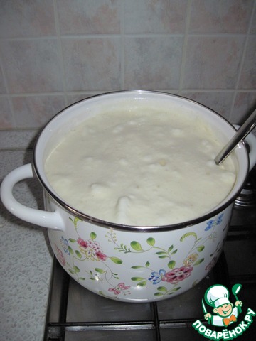 Как только дрожжи поднимутся шапкой, добавить их в кастрюлю к муке, размешать и отставить тесто на 2 часа в теплое место.