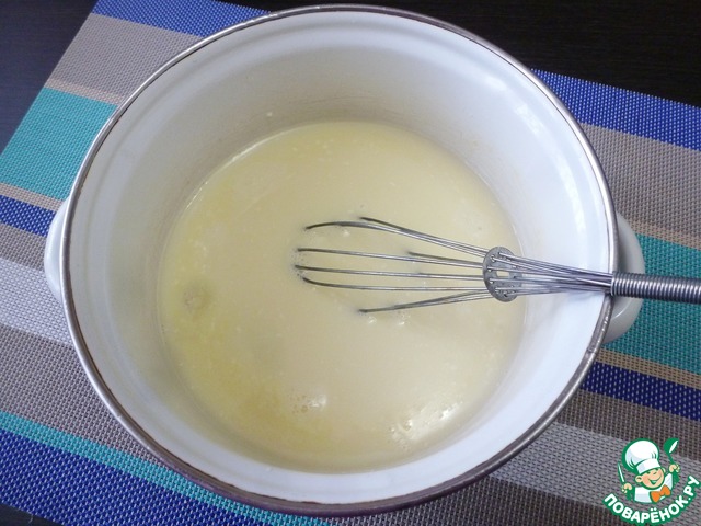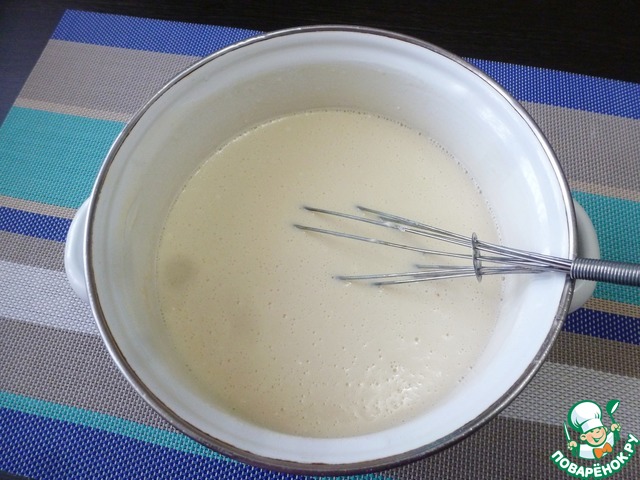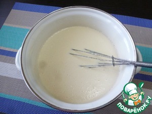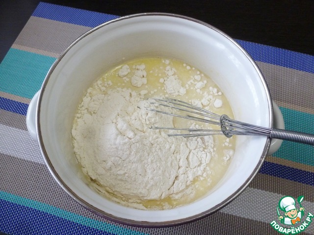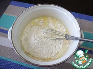 Всыплем муку и тщательно размешаем, чтобы не было комочков.