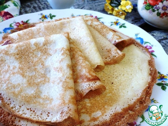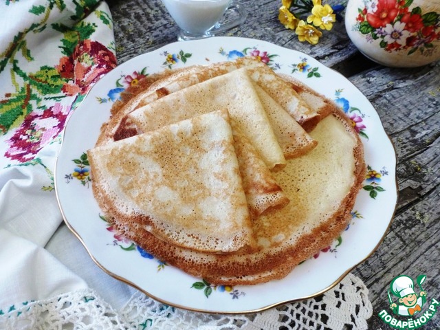 Мягкие и ароматные, кружевные и тоненькие блины готовы! Хороши сами по себе, а можно их нафаршировать творогом или фаршем. Да чем угодно!
