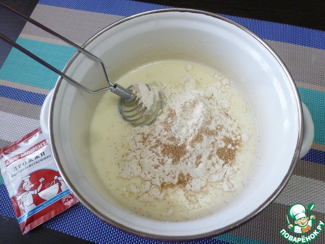 • Дать постоять полчаса, пока дрожжи не начнут работать.