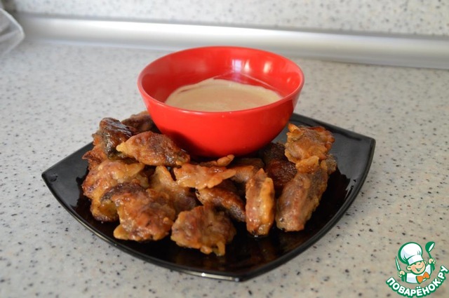 Этот рецепт был когда-то найден мной на просторах интернета. Сейчас я не могу вспомнить, на каком сайте я его нашла, знаю лишь ник автора - povareshka. Автору спасибо, кляр вкусный и хрустящий, а внутри сочное мяско. Ну и от себя добавила сырно-горчичный соус, специально для мужа. Этот соус идеально подошел к такому мясу.