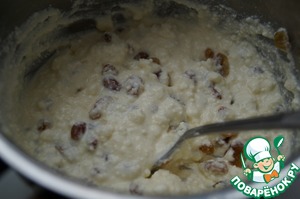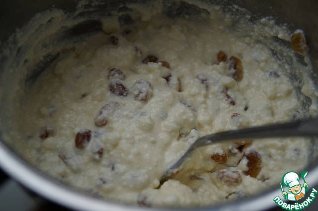 Добавить изюм и ванилин к творожной массе. Начинка готова.