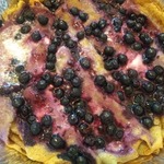 Залить сверху блинчики сметанным соусом и посыпать смородиной (у меня замороженная)