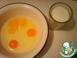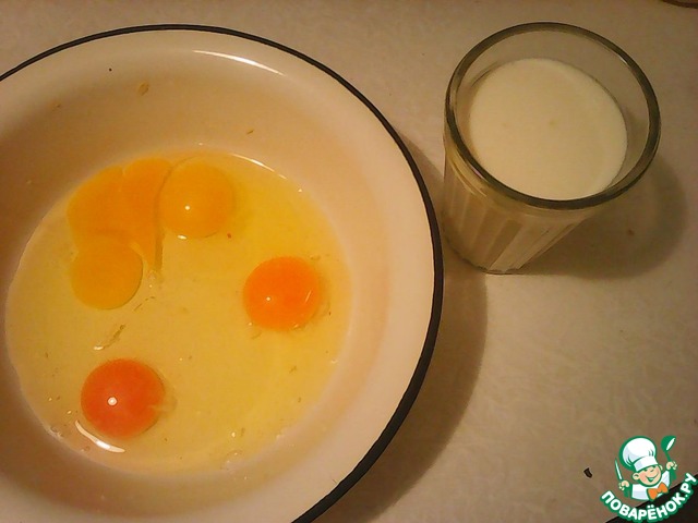 Взбить яйца (я делала двойную норму) и влить кефир с погашенной нем содой.