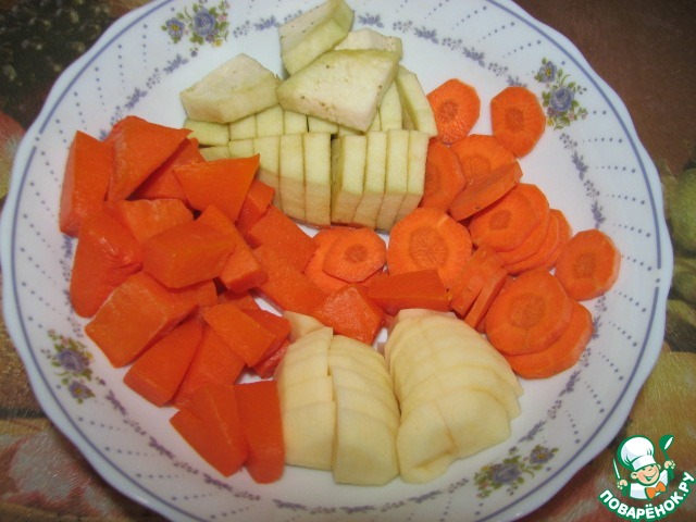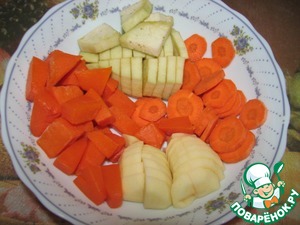 Овощи помыть, почистить, порезать небольшими кусочками.