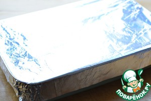 Плотно форму закрыть фольгой (лучше сложить фольгу вдвое) и готовить в духовке мясо 1 час 20 минут.