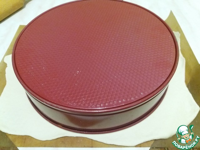 На подпыленную мукой поверхность кладем тесто и раскатываем до 3-5 мм (я раскатывала на пергаменте, чтобы проще было тесто перенести на противень)
