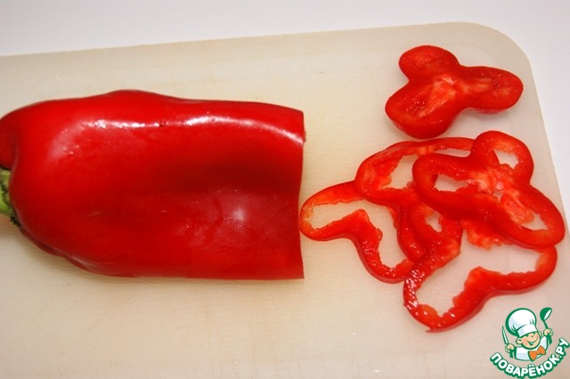 Перец нарезать очень тонкими кольцами.