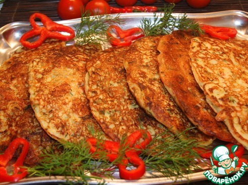 Конечно же это просто блинчики из кабачков с рыбным припеком, любимое в моей семье блюдо, которое не оставляет равнодушными ни детей, ни взрослых! Рецепт я изменила, учитывая отзывы поварят, доработала и результатом осталась очень довольна, поэтому смело делюсь с вами. Вкусно!