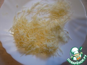 Сыр трем на мелкой терке и отправляем на несколько секунд в микроволновку, что бы подсушить.