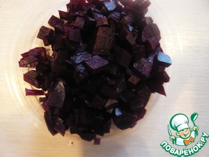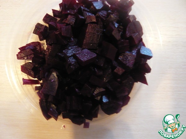 Произвольно нарезаем отварную свеклу.