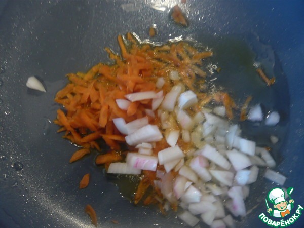 Лук и морковь пассеруем на растительном масле.