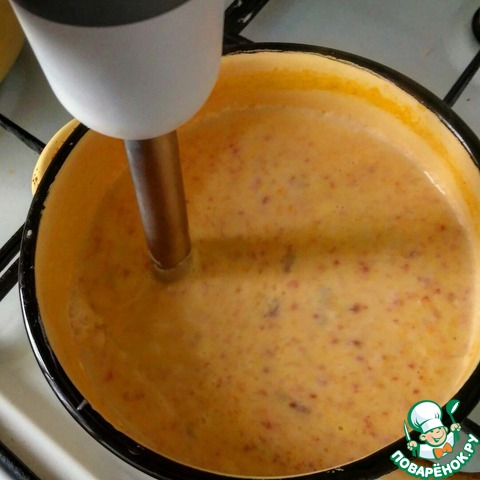 Выключаем суп и включаем блендер, доводим до консистенции пюре!