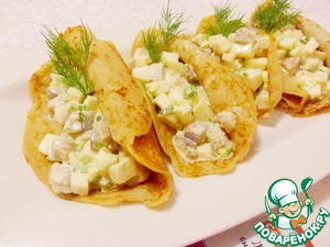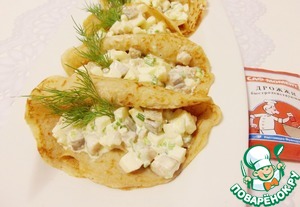 Рецепт «Дрожжевые блины с пикантной начинкой»: