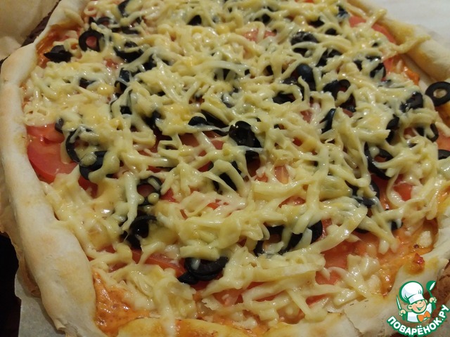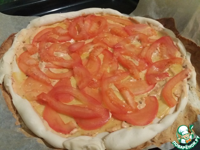 (у меня от этой части теста остались обрезки), сделала из них бортик пиццы. -