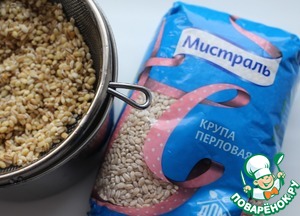 Перловую крупу тщательно промыть и залить холодной водой на 3-4 часа. Затем воду слить.