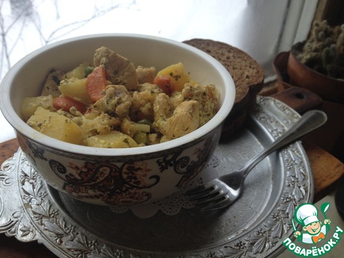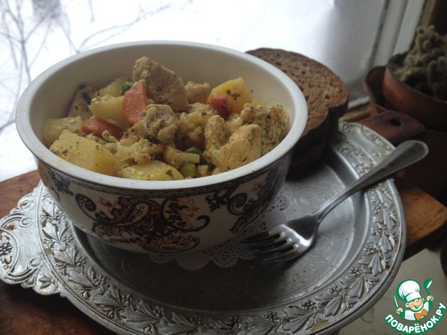 Очень захотелось овощное рагу. Горячего, сытного. Ну а для мужчин добавила я куриное филе. Нам очень понравился это сочинённое рагу. Я готовила его как на плите, так и в мультиварке. Покажу первый вариант.